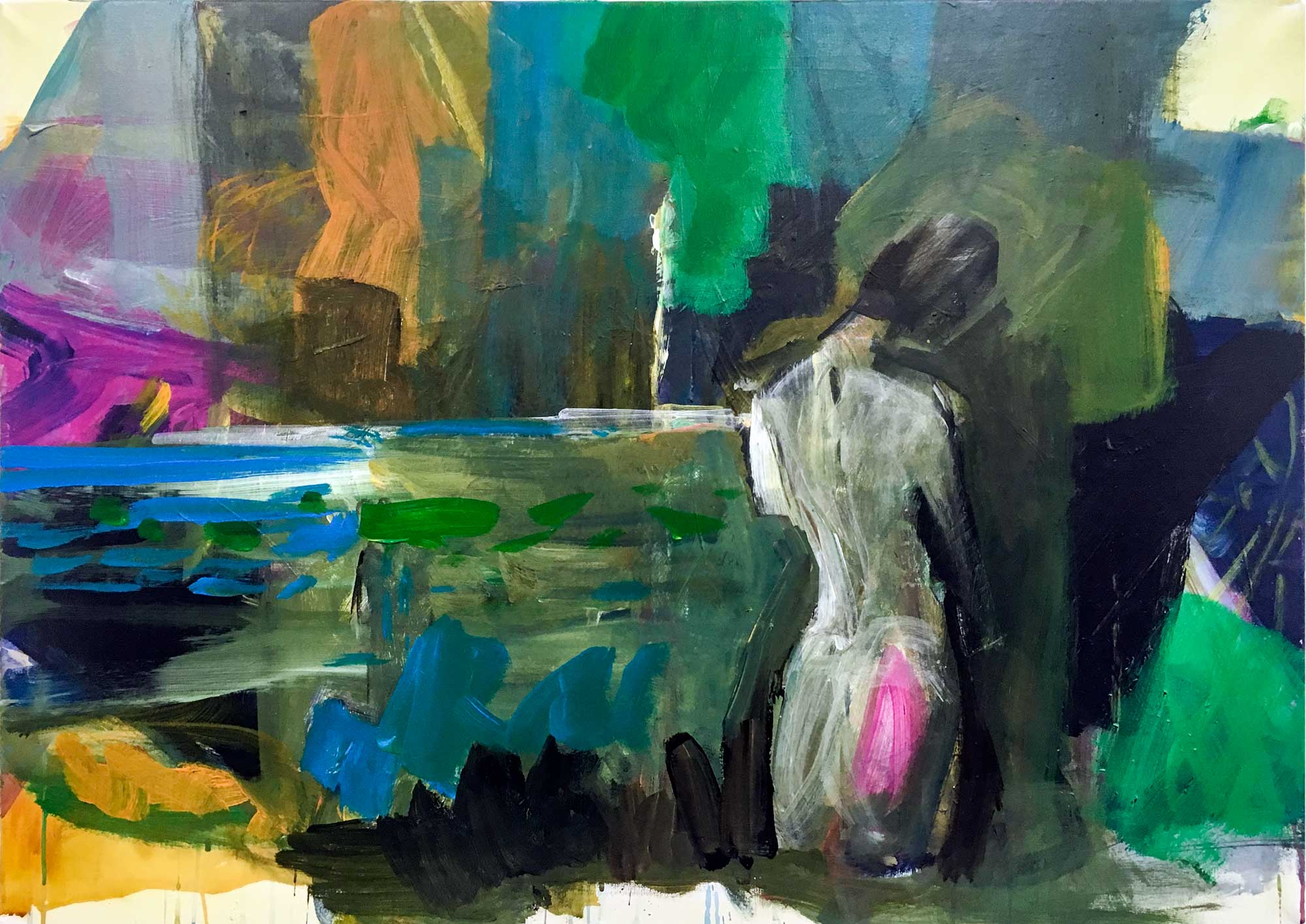 Am Ufer, Acryl auf Leinwand, 150x120cm, 2020